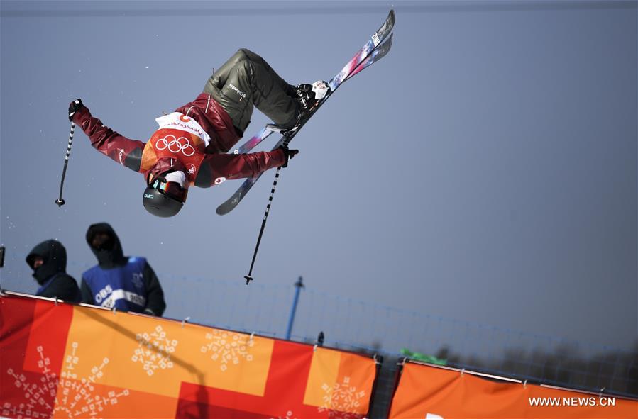 Cassie Sharpe of Canada competes during ladies' ski halfpipe of freestyle skiing at the 2018 PyeongChang Winter Olympic Games at Phoenix Snow Park, PyeongChang, South Korea, Feb. 20, 2018. Cassie Sharpe won the gold medal with 95.80 points. (Xinhua/Fei Maohua)
