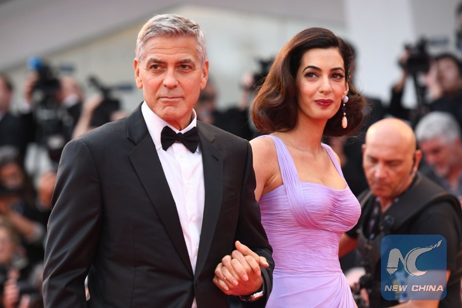 In this file photo taken on Sept. 2, 2017, U.S. actor and director George Clooney and his wife Amal attend the premiere of the movie "Suburbicon" presented out of competition at the 74th Venice Film Festival at Venice Lido. (Xinhua/AFP)