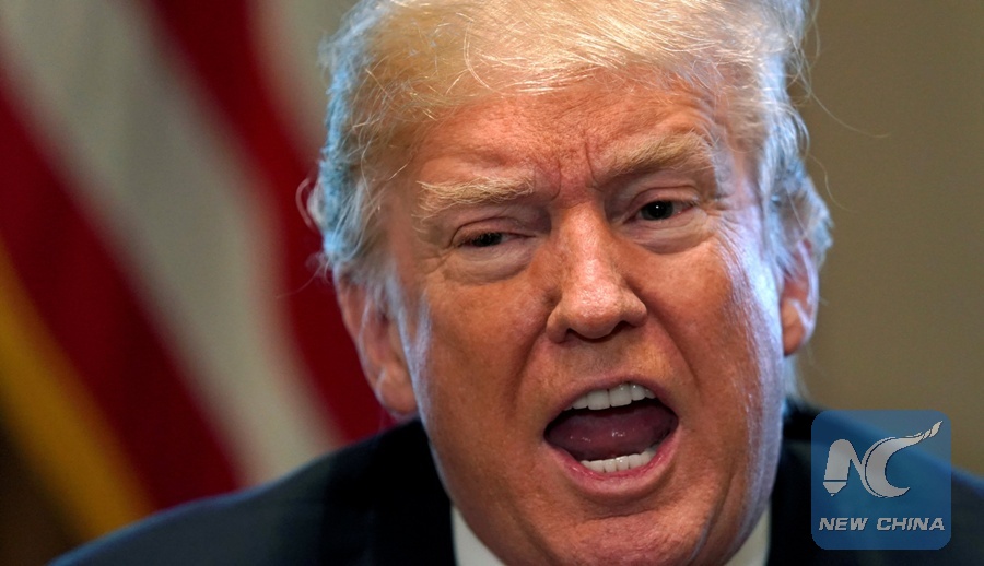 U.S. President Donald Trump announces that the United States will impose tariffs of 25 percent on steel imports and 10 percent on imported aluminum during a meeting at the White House in Washington, U.S., March 1, 2018. (Xinhua/REUTERS)