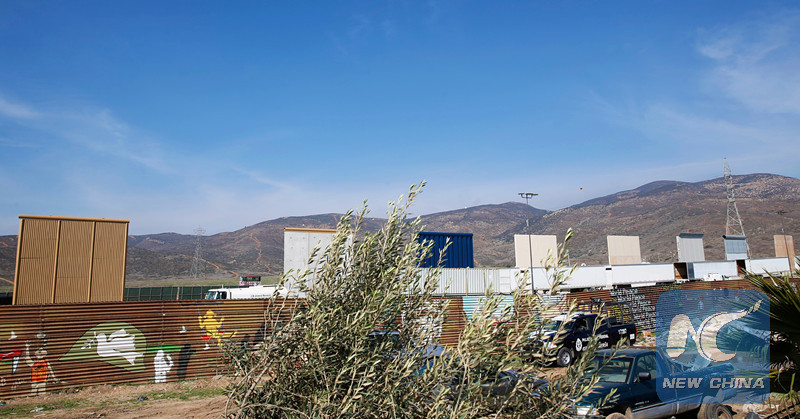 Border wall prototypes are seen behind the current border fence in this picture taken from the Mexican side of the Mexico-U.S. border in Tijuana, Mexico on March 12, 2018. When other countries are building bridges to facilitate transportation and communication, the United States, to the contrary, is building a wall that purports to prevent migrants from entering the country but will end up isolating itself from the world. (Xinhua/Li Ying)