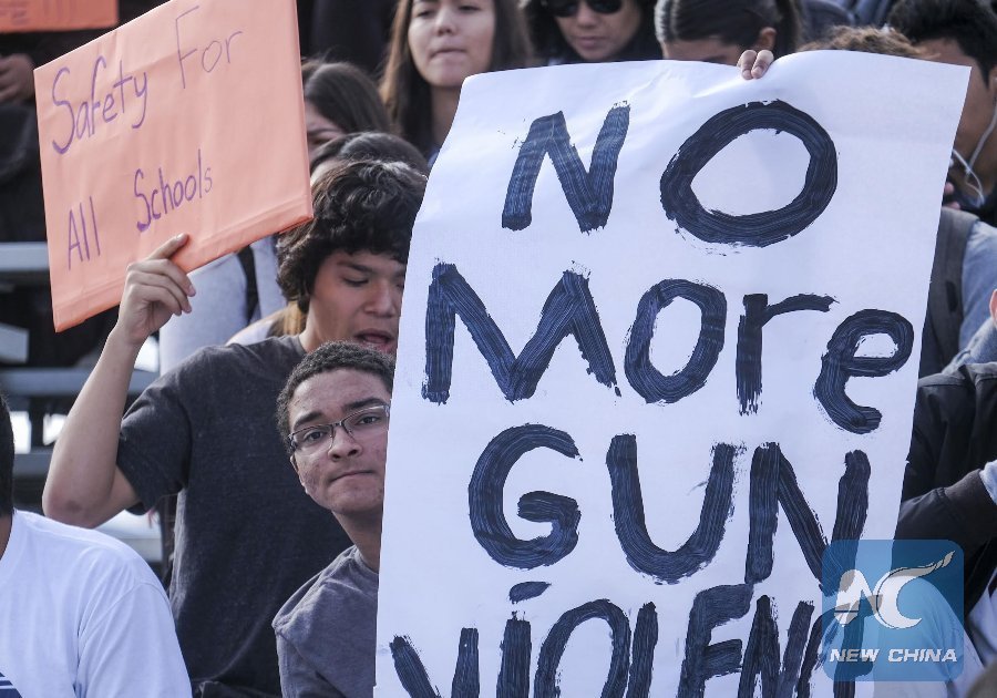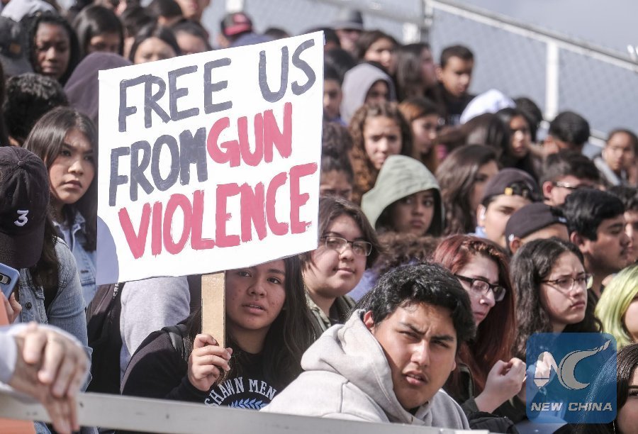 NEW YORK, March 15 (Xinhua) -- In an unprecedented move in recent U.S. history, thousands of high school students walked out of class across the country on Wednesday in a call on Congress to pass tighter gun-control laws.