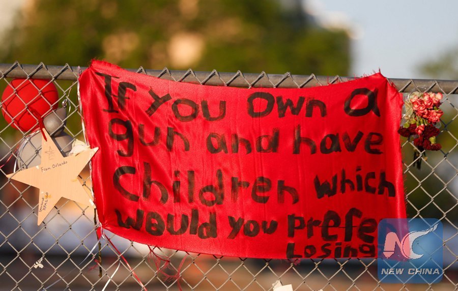 A sign hangs on a fence at Marjory Stoneman Douglas High School in Parkland, Florida on Feb. 27, 2018. (Xinhua/AFP)