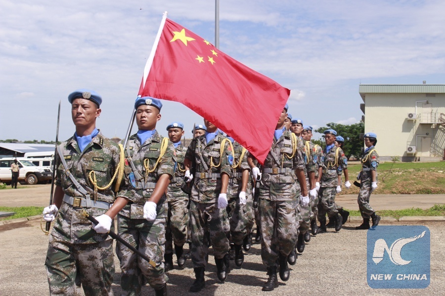 Chinese United Nations (UN) peacekeepers take part in an event to mark the International Day of UN peacekeepers in Juba, capital of South Sudan, on May 29, 2017. (Xinhua/Gale Julius)