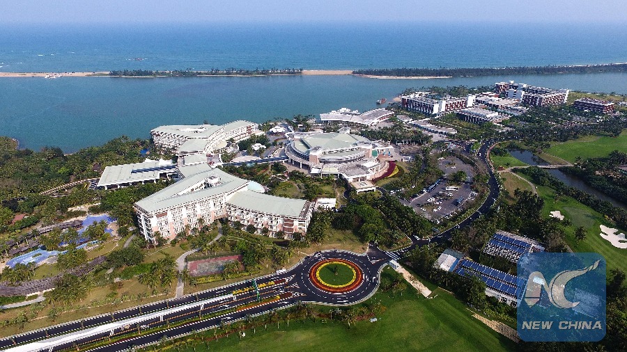 Aerial photo taken on March 22, 2018 shows the Boao Forum for Asia (BFA) Convention Center in Boao Town, Qionghai City of south China's Hainan Province. The 2018 BFA is scheduled for April 8-11 in Boao, a town in the southern Chinese island province of Hainan. (Xinhua/Guo Cheng)