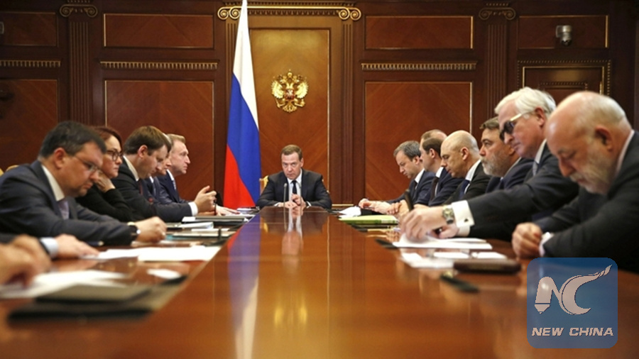 MOSCOW, April 17 (Xinhua) -- Russian Prime Ministry Dmitry Medevdev said Tuesday that the Russian economy is facing urgent challenges and that it is necessary to keep the economy from being negatively impacted by a new round of Western sanctions.
