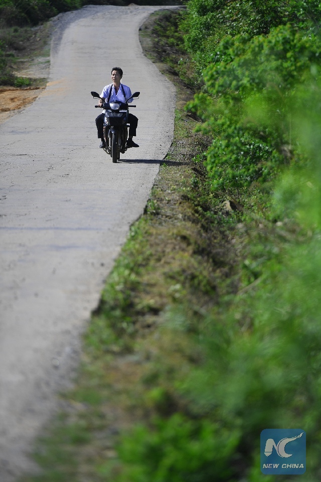 Li Yan is answering a patient's call on motorcycle. (Xinhua/Hu Chenhuan)