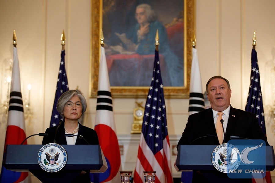 WASHINGTON, June 18 (Xinhua) -- U.S. State Department said on Monday that State Secretary Mike Pompeo and South Korean Foreign Minister Kang Kyung-wha have discussed next steps on the Korean Peninsula issue after the summit between leaders of the United States and the Democratic People's Republic of Korea (DPRK).