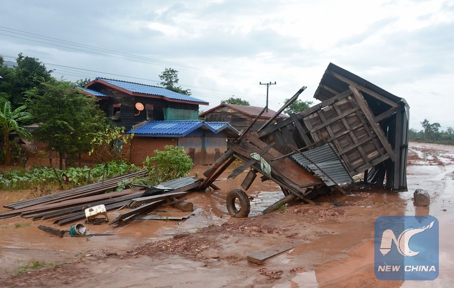 Photo taken on July 27, 2018 shows a damaged house after an under-construction damcollapsed in Sanamxay District, Attapeu Province, Laos. (Xinhua/Liu Ailun)