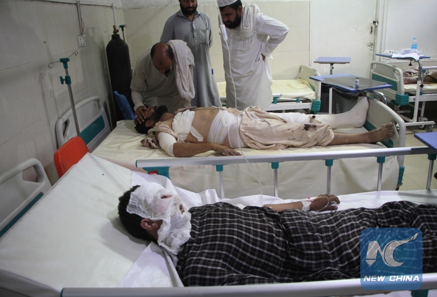 Injured people receive medical treatment at a local hospital after a suicide attack in Kama district of Nangarhar province, Afghanistan, Oct. 2, 2018. At least 13 people were killed and 30 others wounded after a suicide bombing ripped through an election rally in Afghanistan's eastern province of Nangarhar on Tuesday. (Xinhua/Saifurahman Safi)