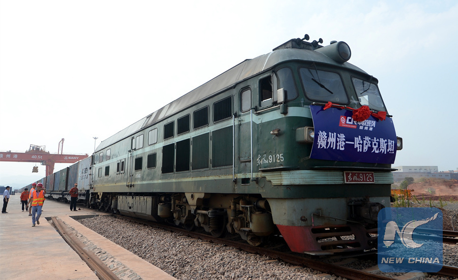 A cargo train leaves for Kazakhstan from Ganzhou, east China's Jiangxi Province, July 27, 2017. (Xinhua/Peng Zhaozhi)