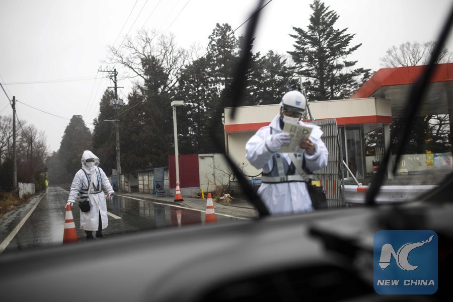 This picture taken on March 5, 2018 shows a guard checking the permission documents at an entrance of the exclusion zone of Tomioka town, Fukushima prefecture, as Japan prepares to mark the 7th anniversary of the devastating 2011 earthquake and tsunami that triggered the Fukushima nuclear disaster. (AFP Photo)