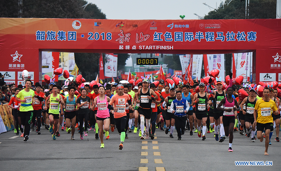 2018 Shaoshan Redrun International Marathon kicks off in Shaoshan City in central China's Hunan Province, on Nov. 25, 2018.