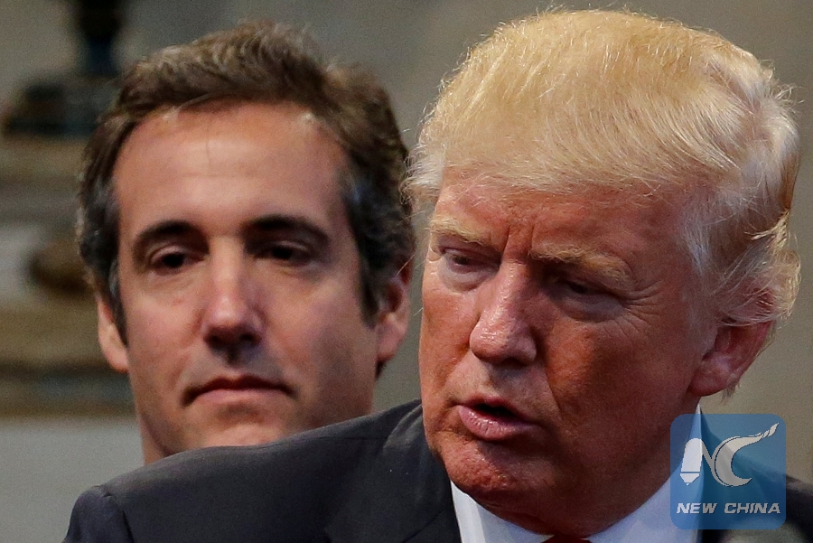 File Photo: Republican presidential nominee Donald Trump's personal attorney Michael Cohen stands behind Trump as a group of supporters lay hands on Trump in prayer during a campaign stop at the New Spirit Revival Center church in Cleveland Heights, Ohio, U.S. Sept. 21, 2016. (Xinhua/REUTERS)