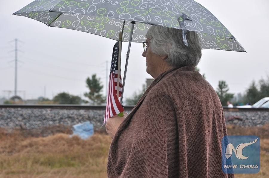 People line up along the train route to mourn for the late former U.S. President George H.W. Bush in Houston, Texas, the United States, on Dec. 6, 2018. (Xinhua/Liu Liwei)