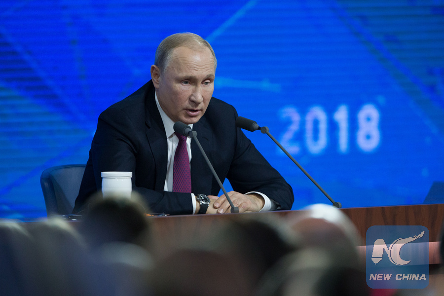 Russian President Vladimir Putin speaks at his annual press conference in Moscow, Russia, on Dec. 20, 2018. (Xinhua/Bai Xueqi)
