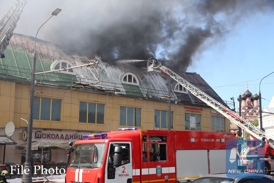 Firefighters work to extinguish the fire in Moscow, Russia on Aug. 9, 2017. (Xinhua/Bai Xueqi)