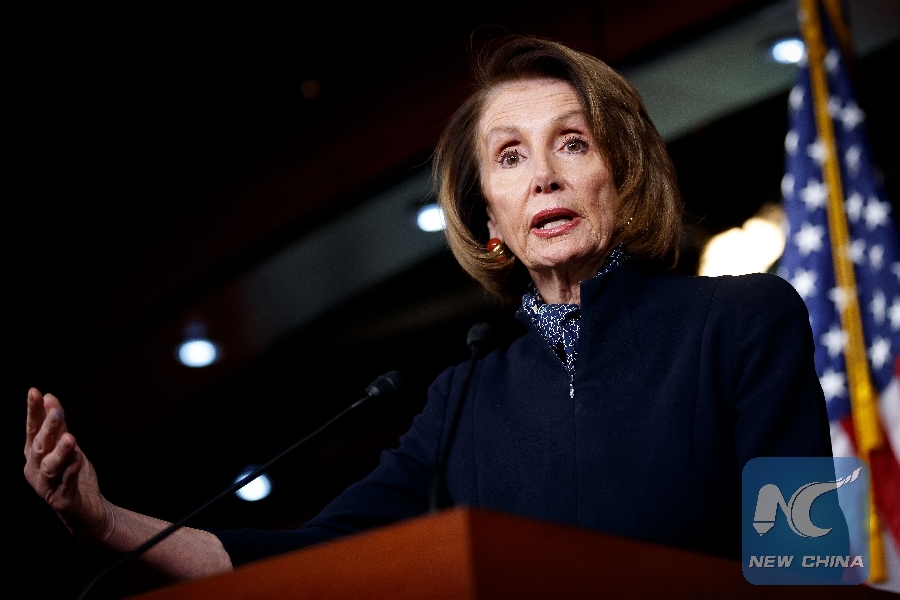 This file photo taken on Dec. 13, 2018 shows Nancy Pelosi speaking during a press conference on Capitol Hill in Washington D.C., the United States. (Xinhua/Ting Shen)