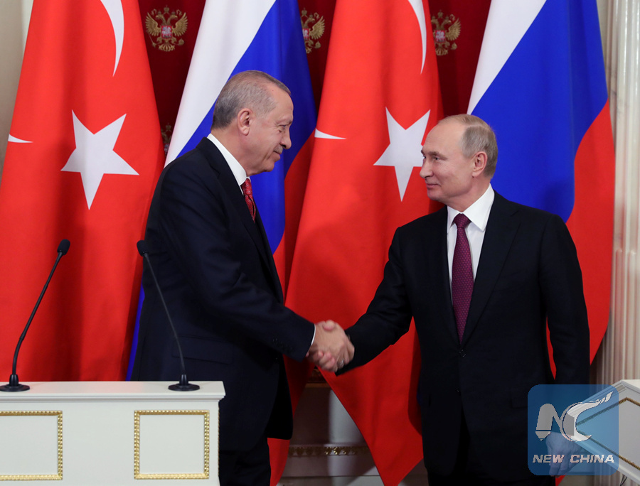 MOSCOW, Jan. 23 (Xinhua) -- Russian and Turkish military and diplomats will continue joint efforts on Syria's post-crisis reconstruction, Russian President Vladimir Putin said here Wednesday following talks with his Turkish counterpart Recep Tayyip Erdogan.