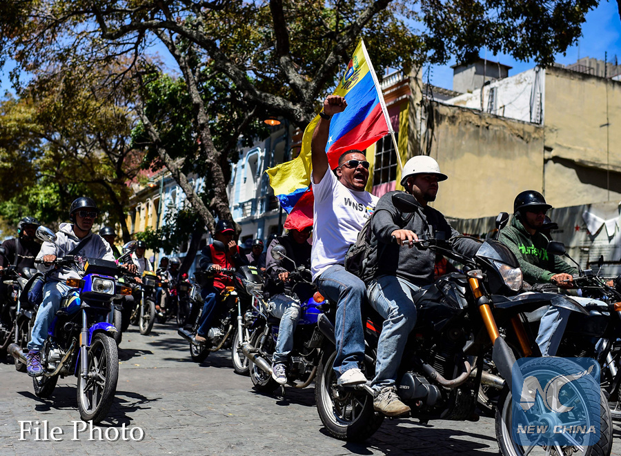 Supporters of Venezuelan President Nicolas Maduro ride their motorcycles in front of the National Congress, in Caracas, on February 22, 2019. (AFP PHOTO)