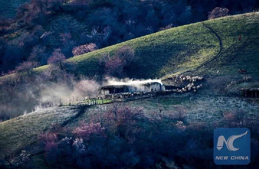 As snow starts to melt, the vast shades of apricot blossom in Ili Kazak Autonomous Prefecture, northwest China's Xinjiang Uygur Autonomous Region, change the palette of the valley into a fresh light pink. The 2,000 hectares of primitive forest here date back more than 1,000 years.