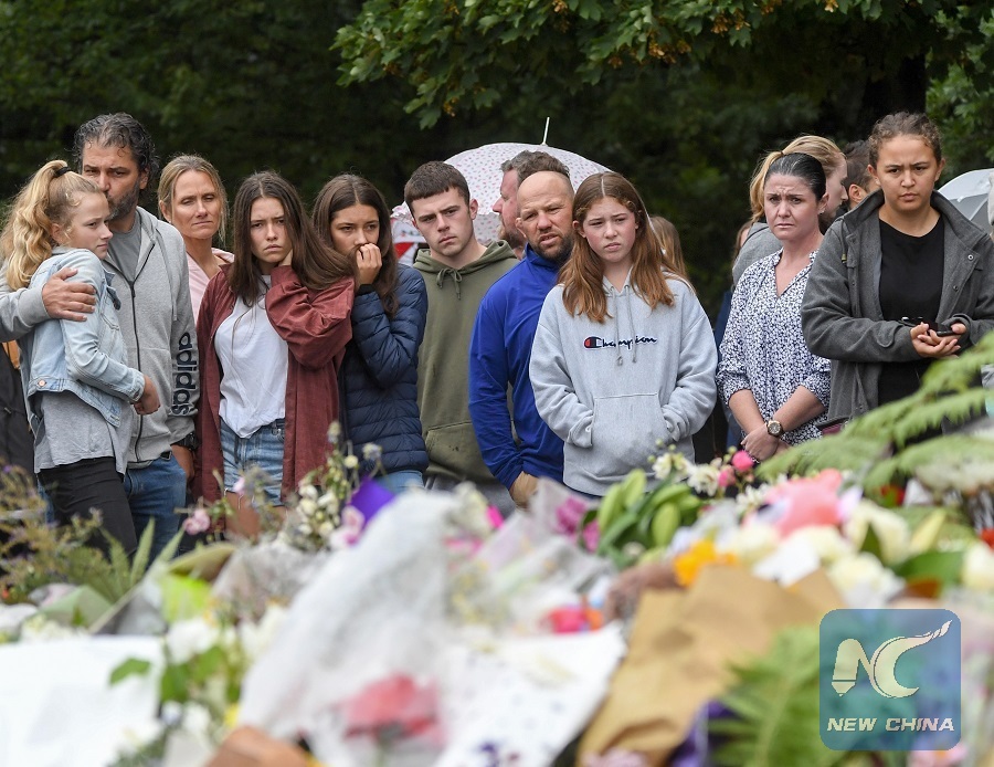 CHRISTCHURCH, New Zealand, March 17 (Xinhua) -- With cold, dark, gloomy clouds hovering above Christchurch and fallen Autumn leaves lining the footpath outside the botanical gardens in New Zealand's terror-hit Christchurch, a community choir sings in the rain for hundreds of people to mourn the victims of the nation's worst ever terror attacks.