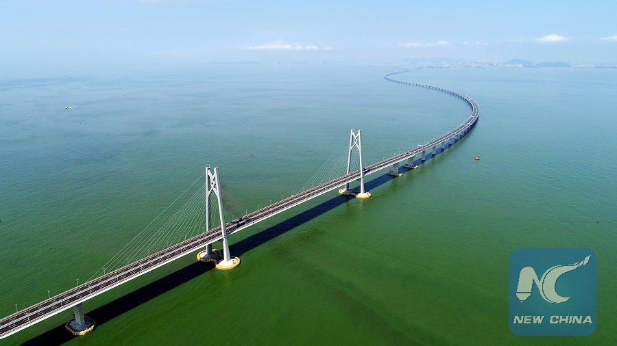 Aerial photo taken on July 11, 2018 shows the Hong Kong-Zhuhai-Macao Bridge. (Xinhua/Liang Xu)