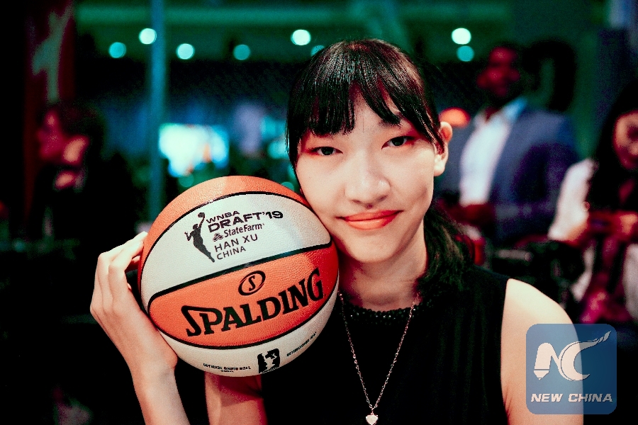 Han Xu presents at the 2019 WNBA Draft in New York, the United States on April 10, 2019. (Xinhua/Wang Ying)