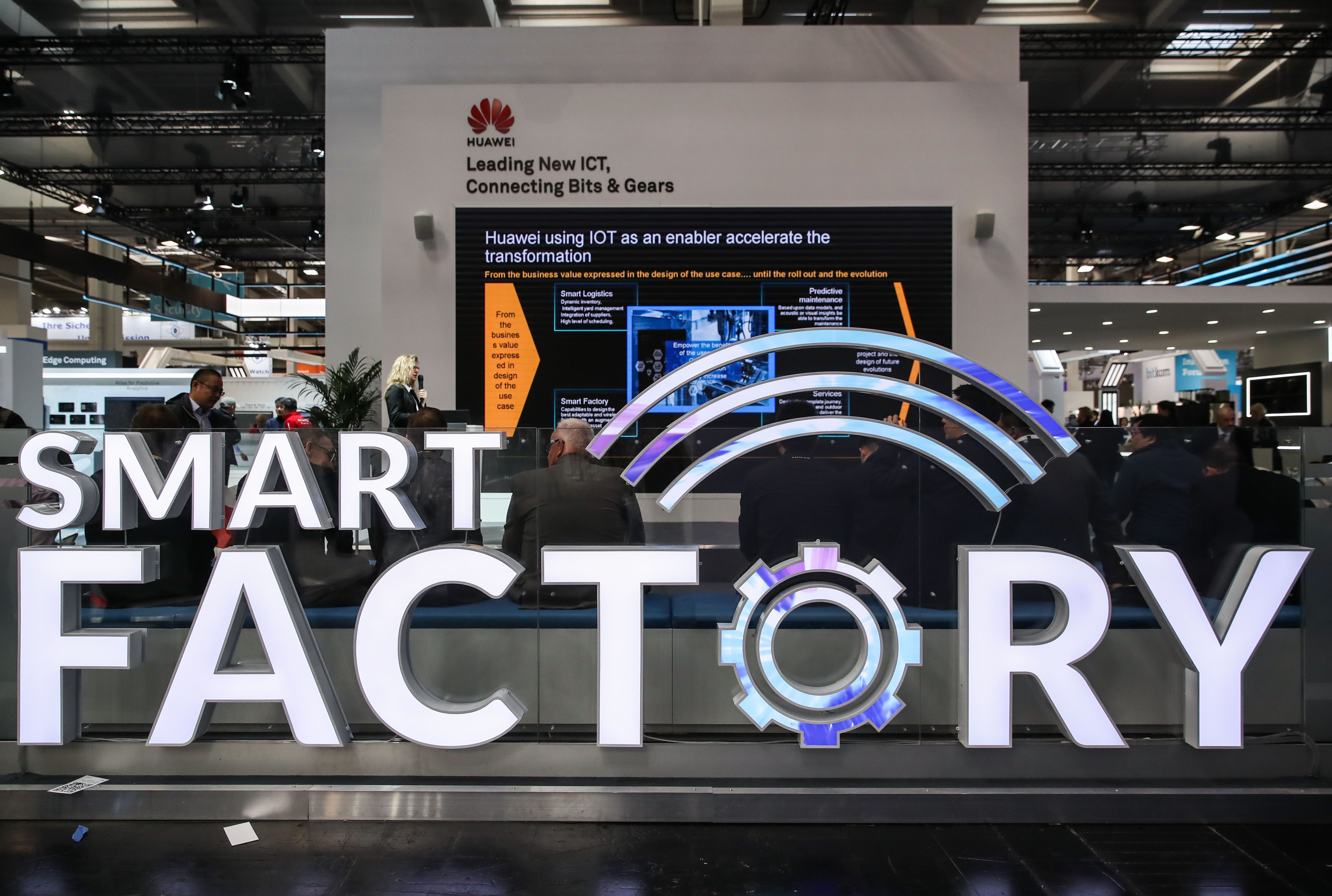 Photo taken on April 1, 2019 shows the booth of Chinese tech company Huawei at Hanover Fair 2019 in Hanover, Germany (Xinhua)