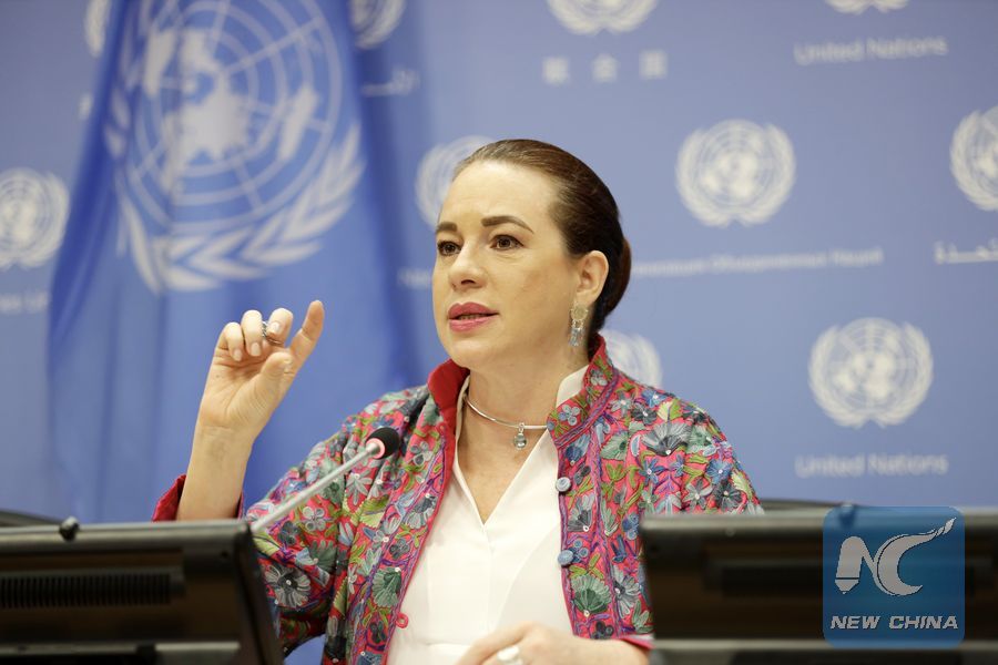 United Nations General Assembly (UNGA) President Maria Fernanda Espinosa Garces speaks to journalists during a press conference at the UN headquarters in New York, June 27, 2019. Maria Fernanda Espinosa Garces on Thursday said that her message to the leaders attending the 2019 G20 Summit was that "we have run out of time" on climate change. (Xinhua/Li Muzi)
