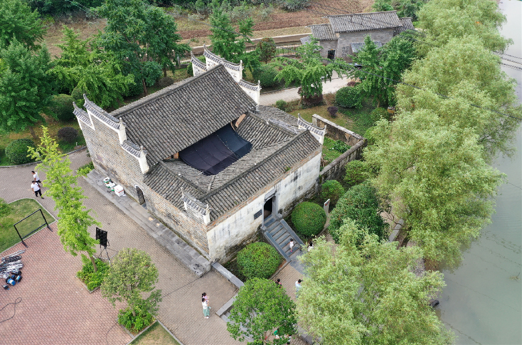 Aerial photo taken on June 29, 2019 shows the Sanguantang building complex which once served as the Red Army's command center during the 1934 Battle of Xiangjiang in Jieshou Town of Xing'an County, south China's Guangxi Zhuang Autonomous Region. (Xinhua/Lu Boan)
