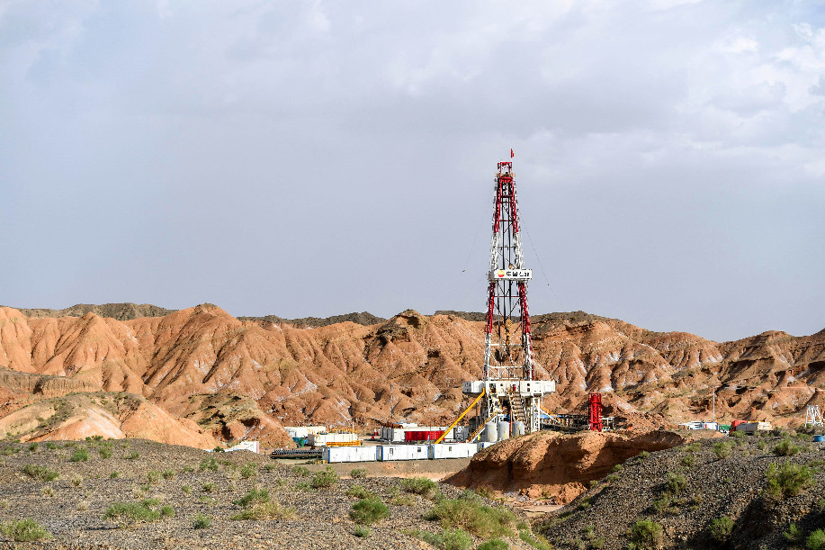 Photo taken on July 7, 2017 shows Keshen 605 well at the Tarim Oilfield in Aksu, northwest China's Xinjiang Uygur Autonomous Region. (Xinhua)