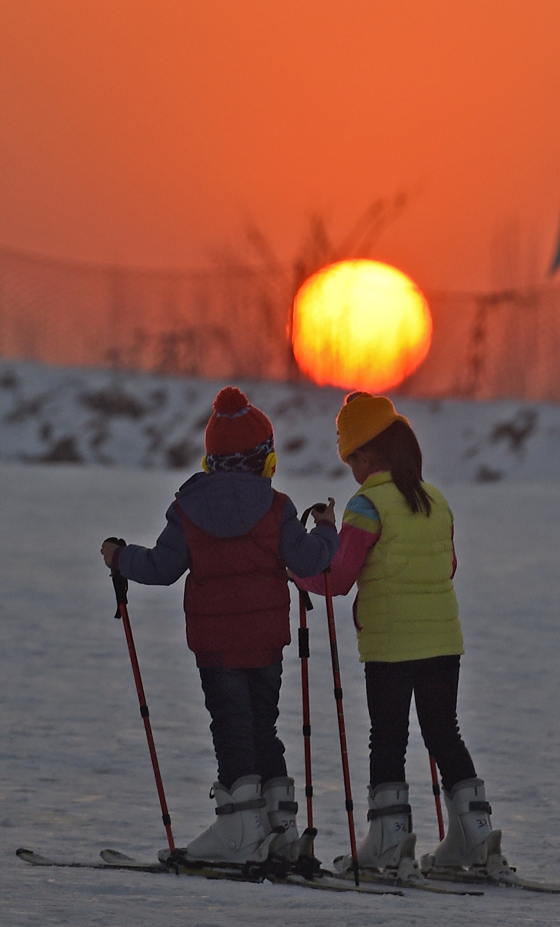 Citizens celebrate new year at Siji Ski Resort of the Mingcui Lake National Wetland Park in Yinchuan, capital of northwest China's Ningxia Hui Autonomous Region, on Jan. 1, 2016. (Xinhua/Wang Peng)