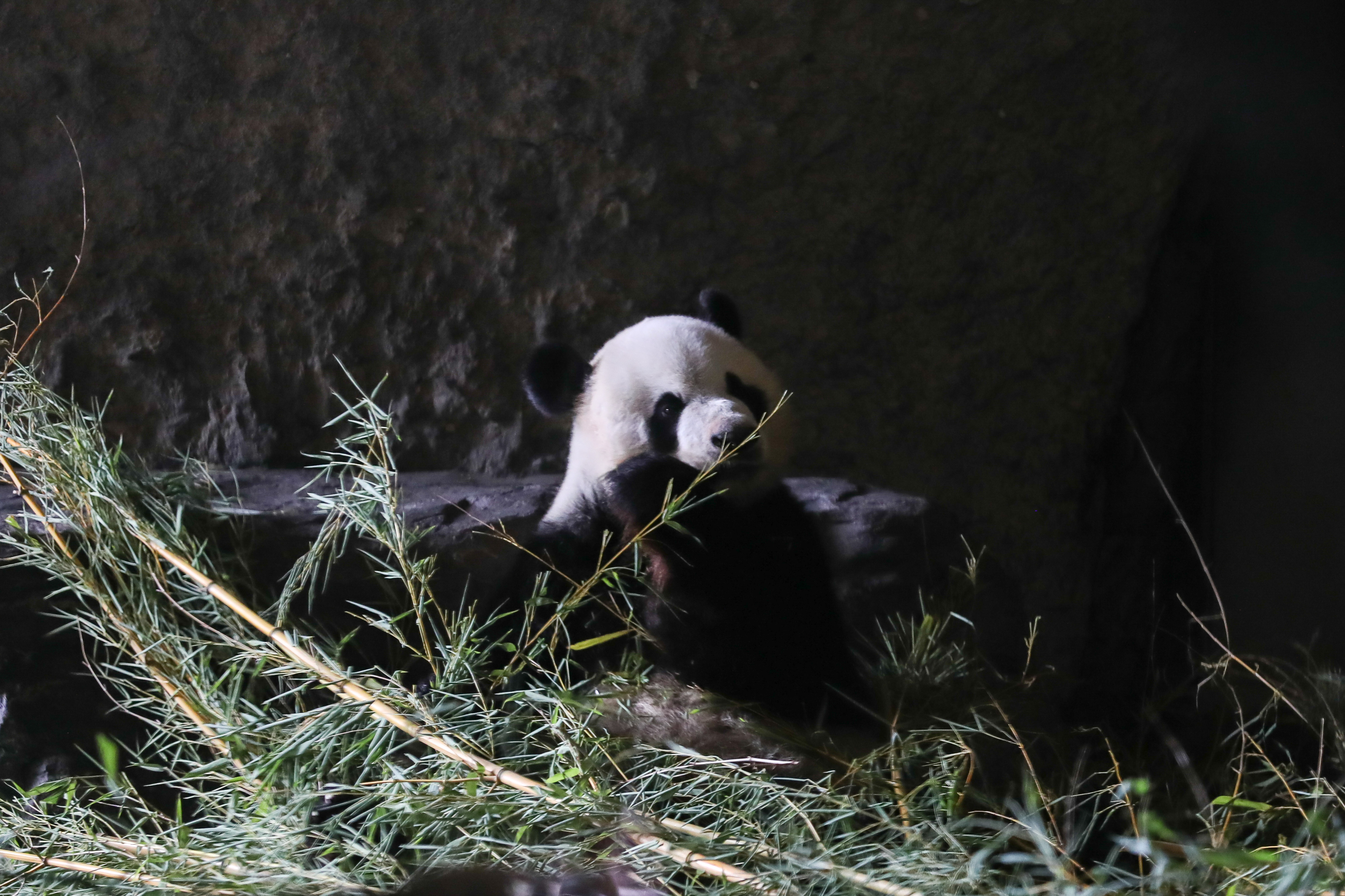 Giant panda Xing Hui eats bamboo branches at Pairi Daiza zoo in Brugelette, western Belgium, on Aug. 9, 2019.(Xinhua/Zhang Cheng)