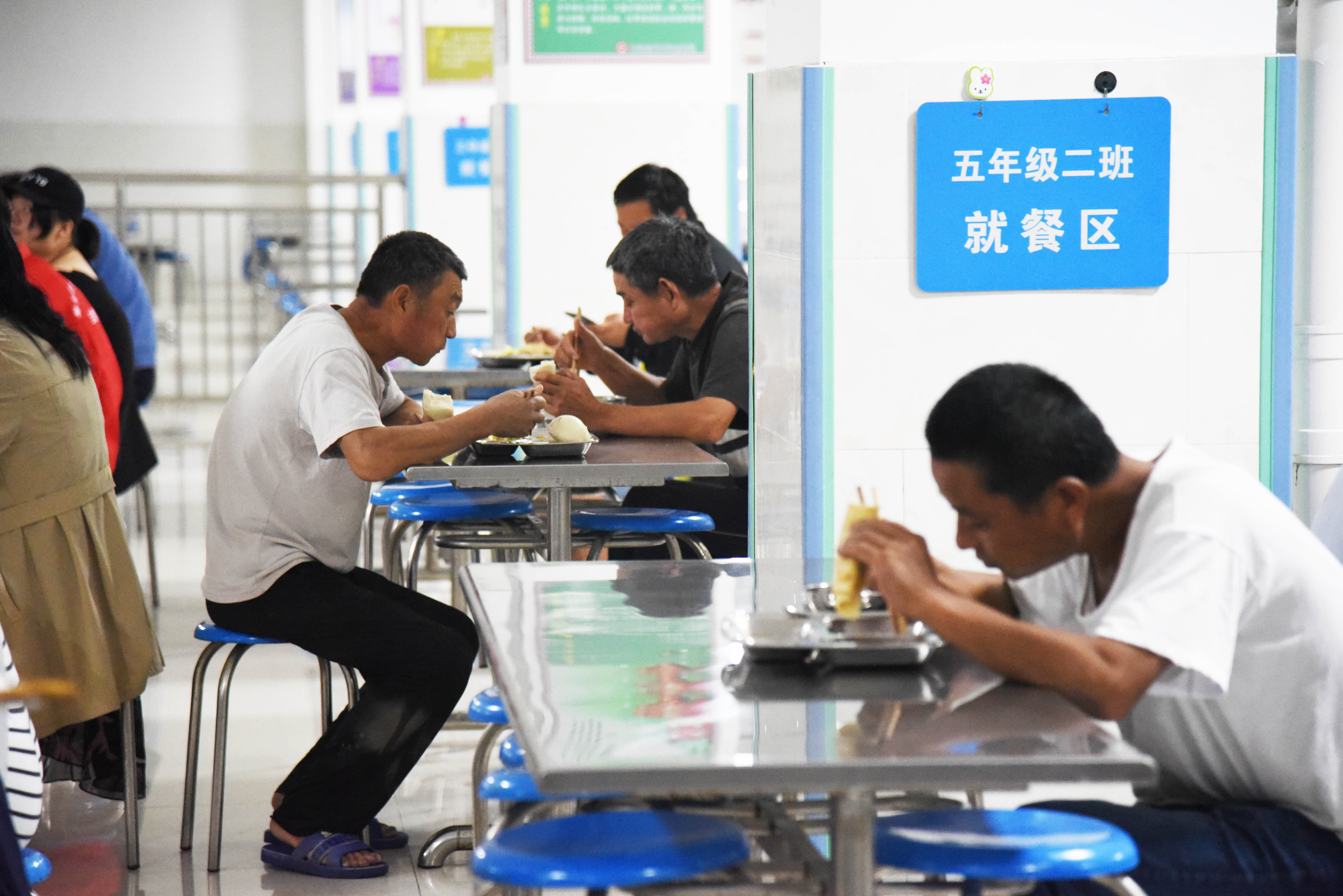 People have meals at a middle school, which now serves as a relocation site, in Shouguang, E China's Shandong Province. (Xinhua/Wang Kai)