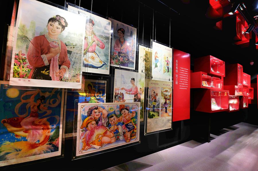Liu Sanjie portraits are exhibited at the Liu Sanjie Cultural Museum in Nanning, capital of Guangxi Zhuang Autonomous Region, south China, on Aug. 7, 2019. (Xinhua/Huang Yaoteng)