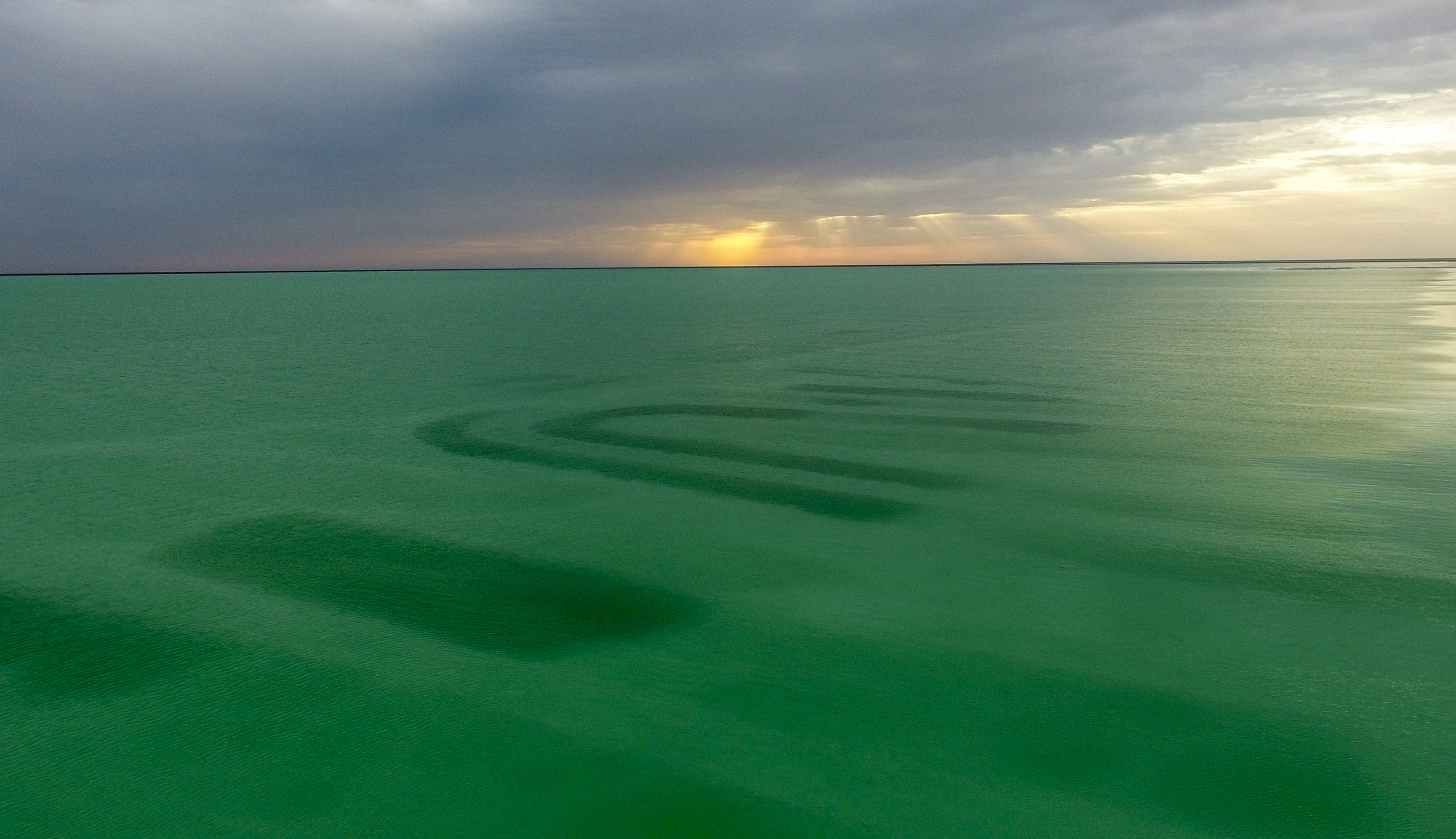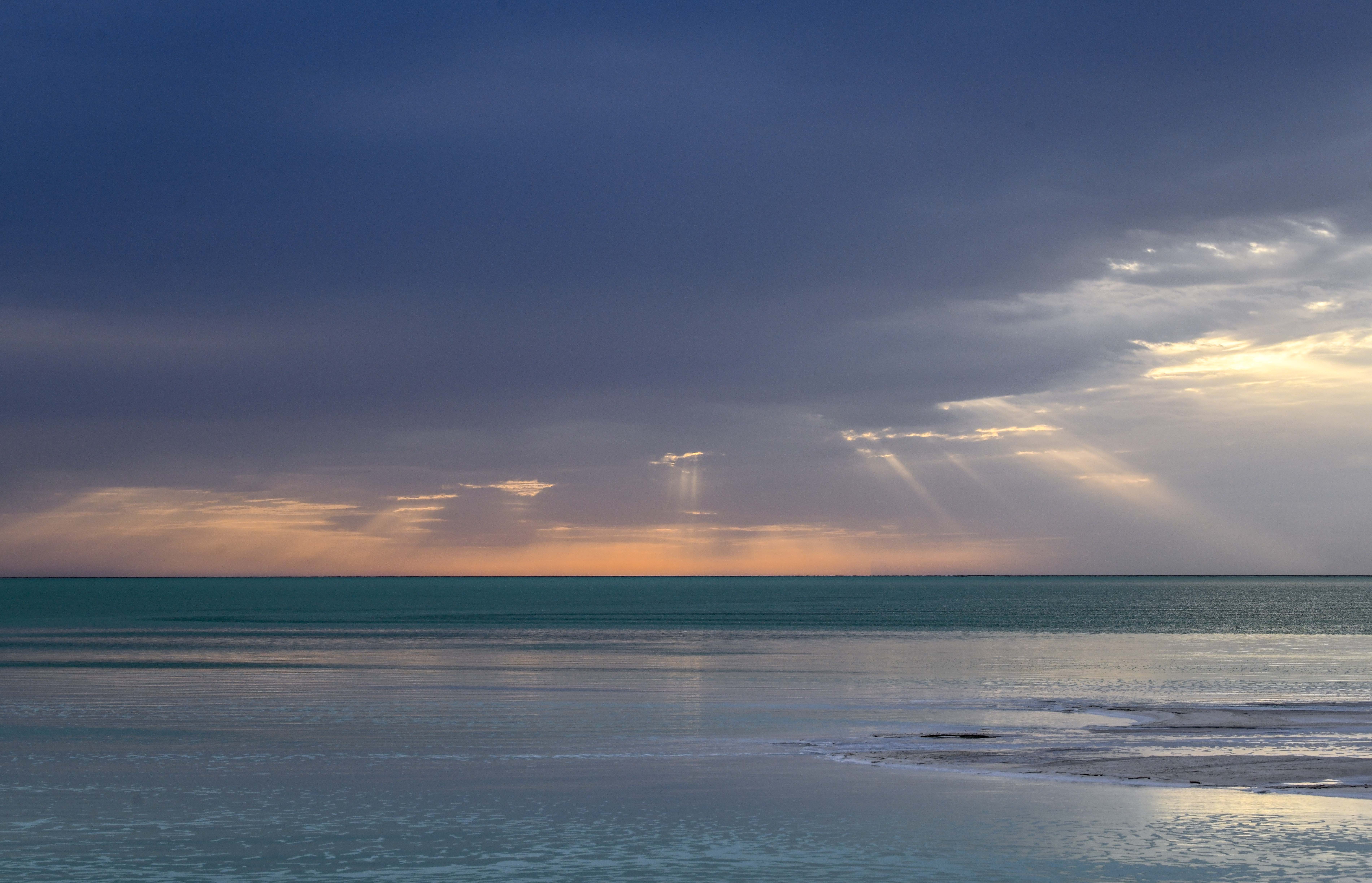 Sunset at the salt pan at Lop Nur in Ruoqiang county, northwest China's Xinjiang Uygur Autonomous Region. (Xinhua/Zhao Ge)