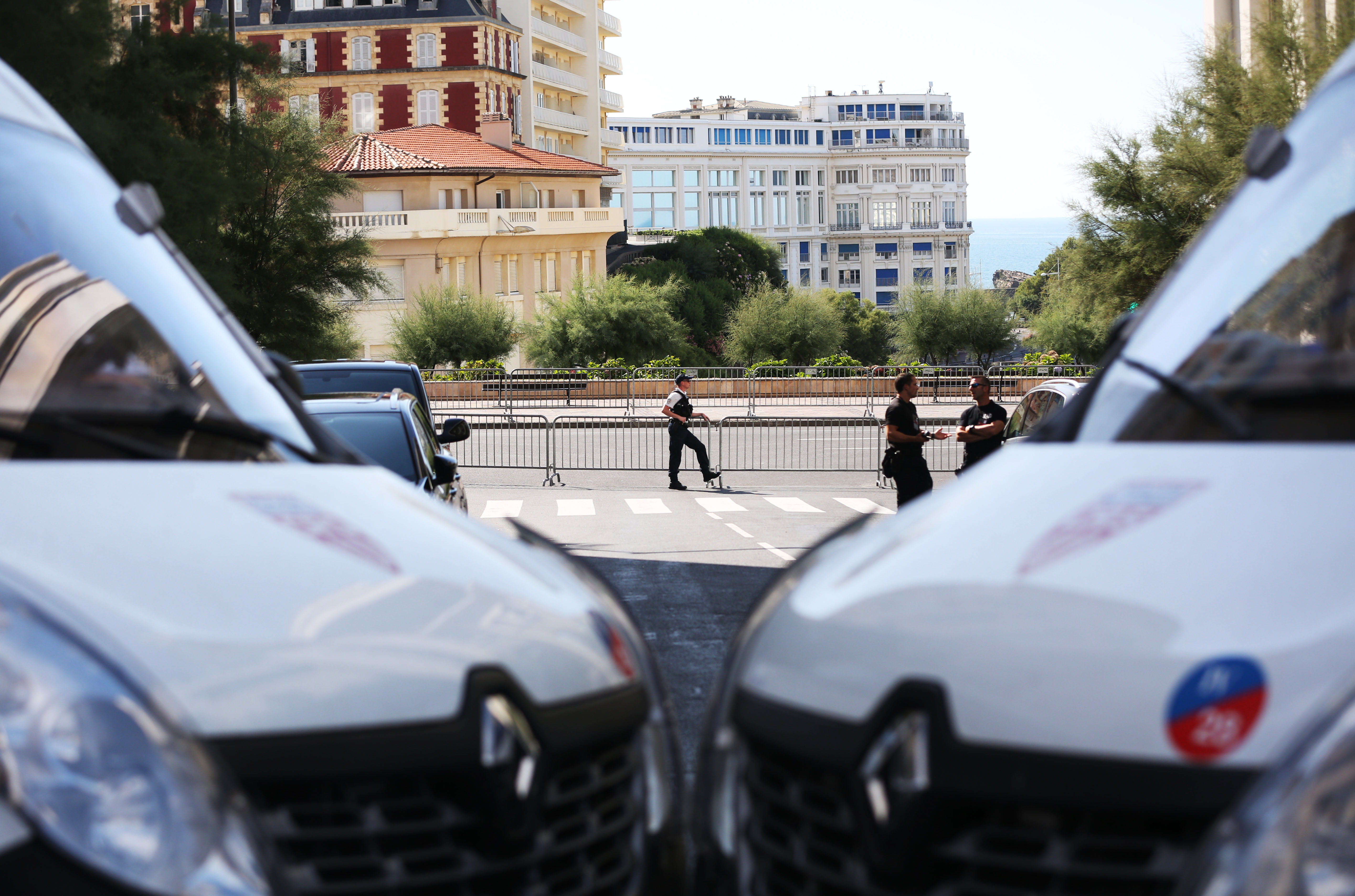 Policemen stand guard in Biarritz, southwestern France, on Aug. 23, 2019. Biarritz, the seaside resort in southwestern France, has been transformed into a security fortress awaiting heads of state of the Group of Seven (G7) to start their summit here on Saturday. (Xinhua/Gao Jing)