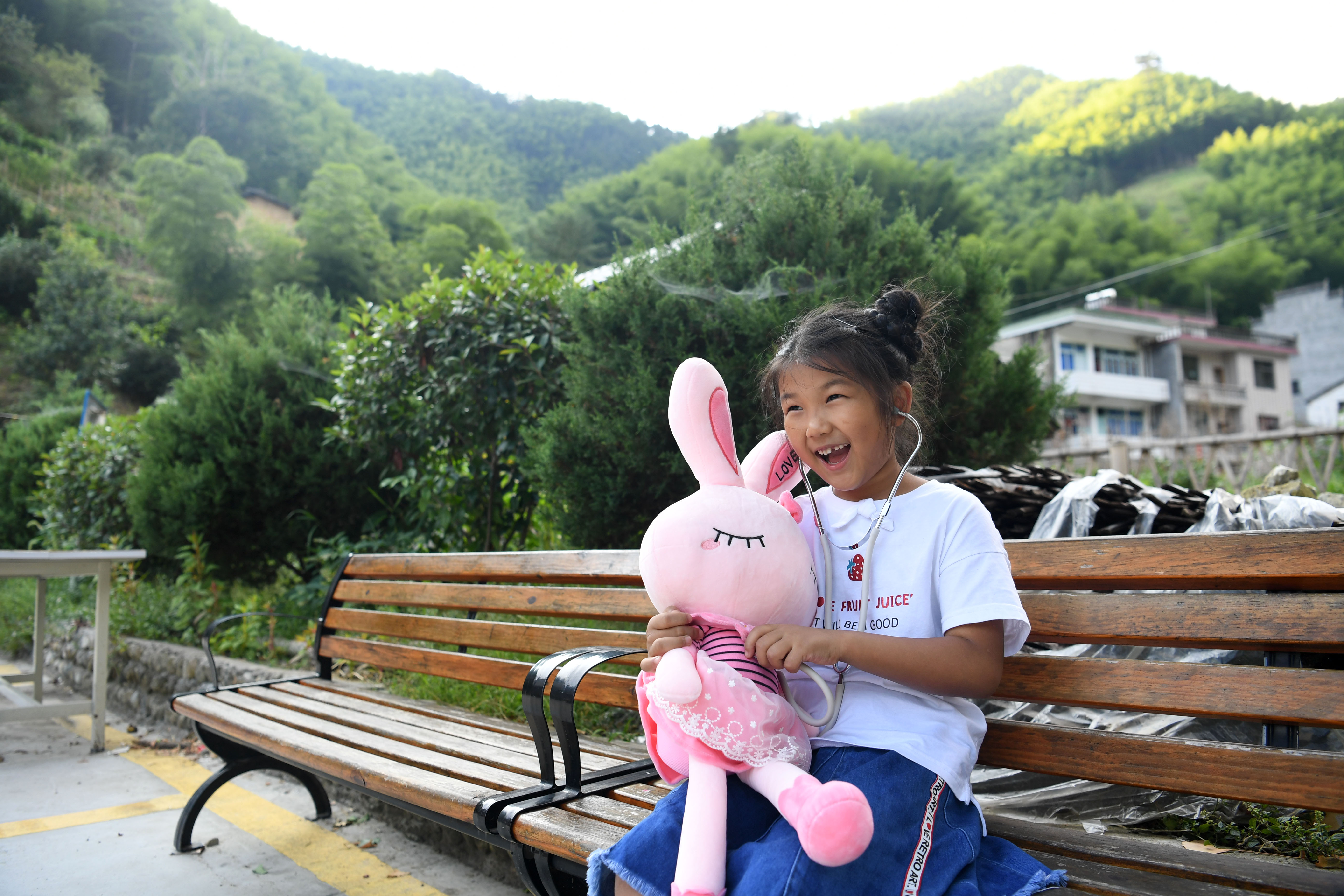 Zhang Qingyu plays in Qingxi Village, Huangjian Township of east China's Anhui Province, Aug. 31, 2019.(Xinhua/Liu Junxi)