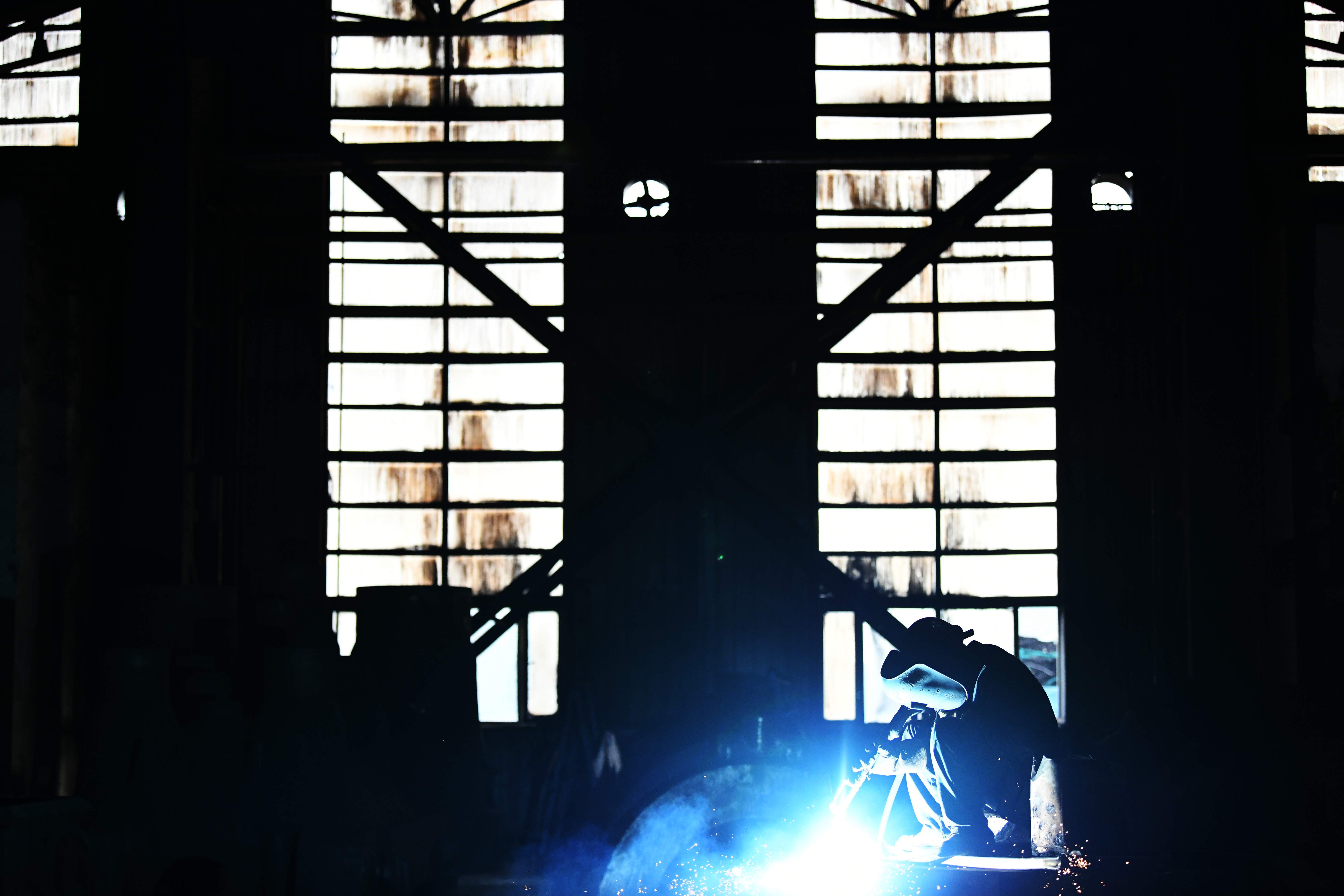 A worker welds components at a factory of Harbin Turbine Company Limited in Harbin, Sept. 3, 2019. (Xinhua/Wang Jianwei)