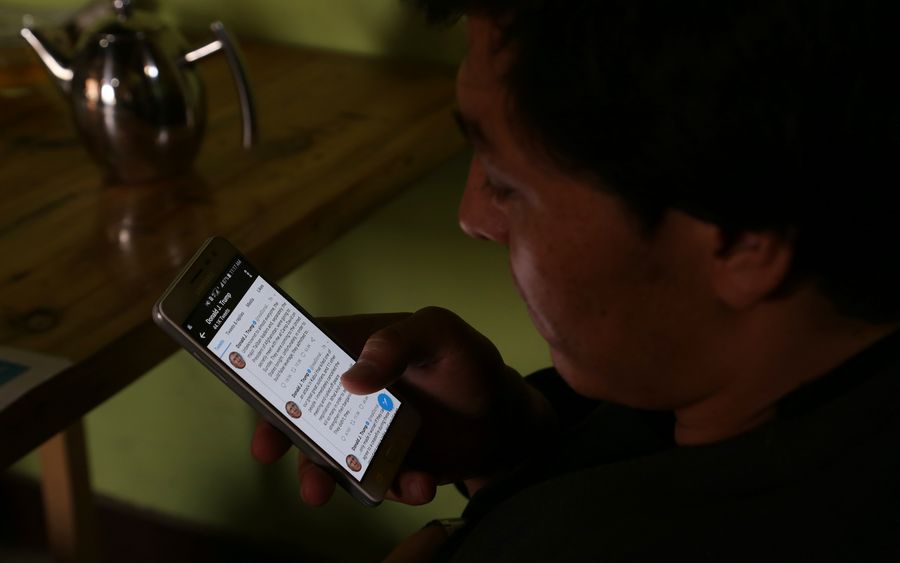 An Afghan man reads the tweets of U.S. President Donald Trump in Kabul, capital of Afghanistan, Sept. 8. 2019. (Photo by Sayed Mominzadah/Xinhua)