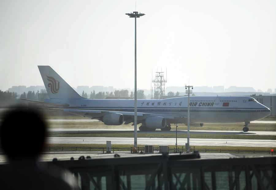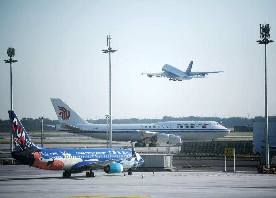 An Air China flight takes off at the Daxing International Airport in Beijing, capital of China, Sept. 25, 2019. (Xinhua/Zhang Chenlin)
