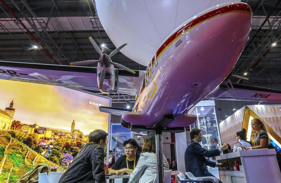 Photo taken on Nov. 6, 2018 shows a model of commuter plane at the booth of the Czech Republic at the first China International Import Expo (CIIE) in Shanghai, east China. (Xinhua/Yin Gang)