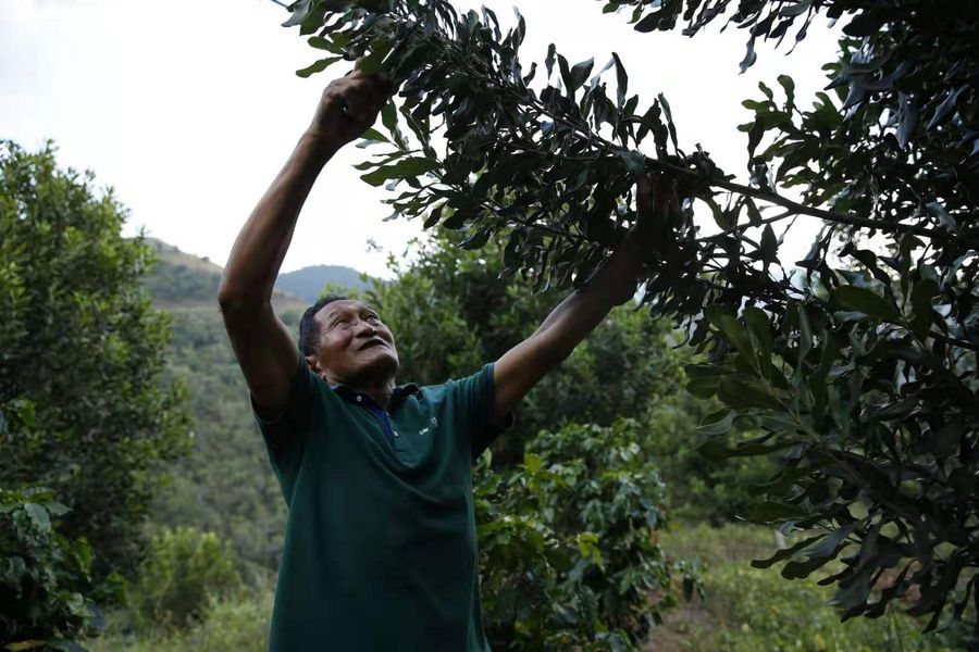 Bi Jiafu, the first to start growing macadamia nuts in Daxueshan Township located at the foot of a snow-capped mountain, has devoted more than two decades to the cultivation and led many of his fellow villagers to shake off poverty by growing the profitable nuts.