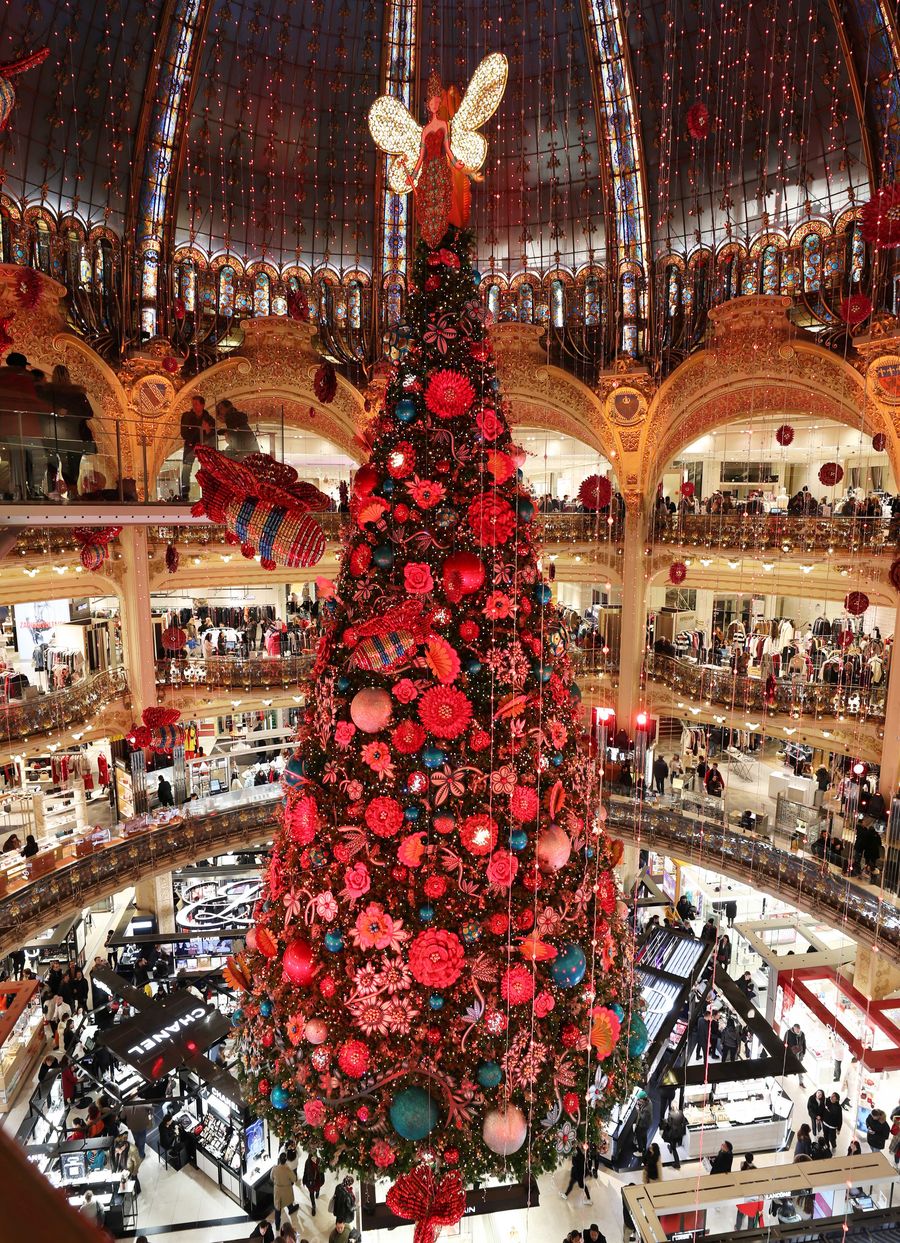 A giant Christmas tree stands at the Galeries Lafayette department store in Paris for the festive season. (Xinhua/Gao Jing)