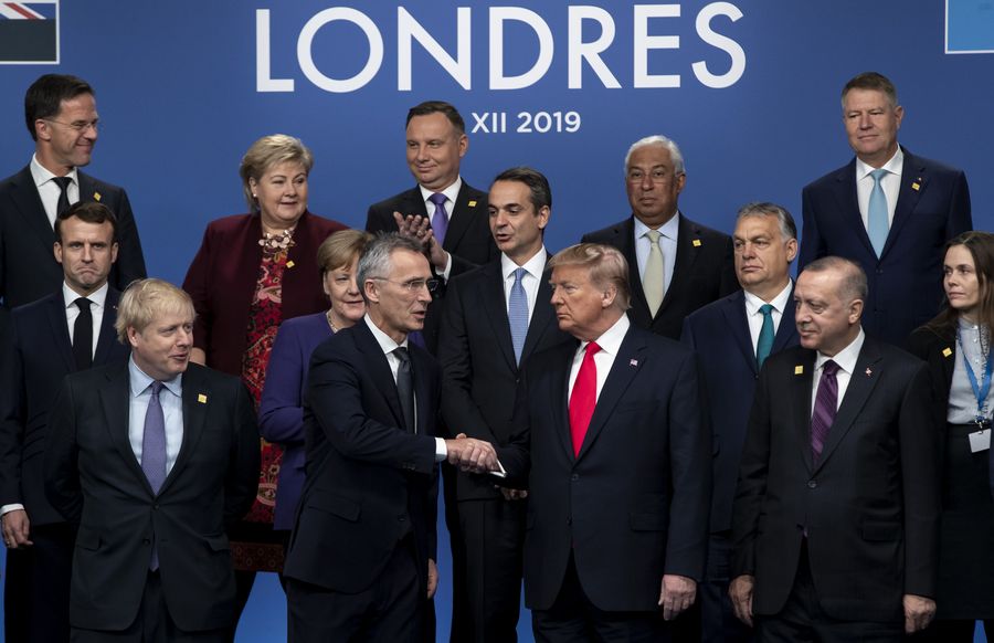 NATO (North Atlantic Treaty Organisation) leaders pose for a group photo at the NATO Summit in London, Britain, on Dec. 4, 2019. (Xinhua/Han Yan)