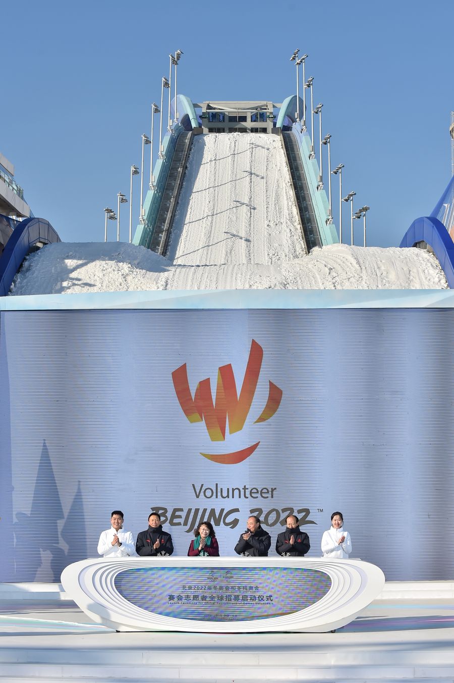 After Cai Qi, president of Beijing 2022 organizing committee, opened the Volunteer Application Portal (vol.beijing2022.cn) together with 1,000 volunteer representatives, the logo of the volunteer programs was revealed at the ceremony.