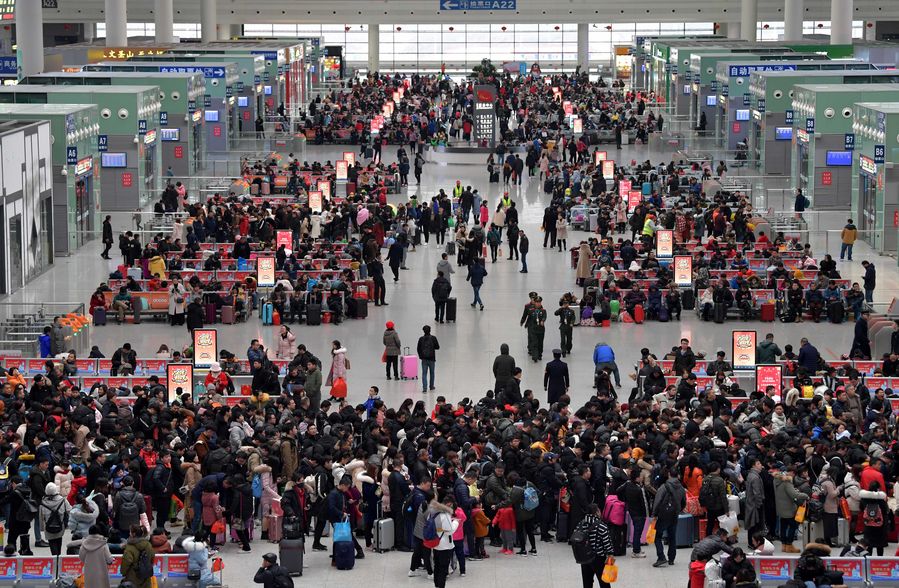 Passengers are seen in waiting room at Nanchangxi Railway Station in Nanchang, east China's Jiangxi Province, Feb. 10, 2019. (Xinhua/Peng Zhaozhi)