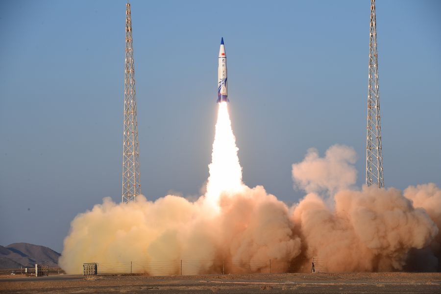 The commercial suborbital carrier rocket Tansuo-1 blasts off from the Jiuquan Satellite Launch Center in Jiuquan, northwest China's Gansu Province, Dec. 25, 2019. The commercial suborbital carrier rocket Tansuo-1 developed by a private Chinese company was launched from the Jiuquan Satellite Launch Center in northwest China Wednesday. The rocket can serve purposes of meteorological observation, microgravity testing as well as satellite payload experiments. It was the maid flight of the first rocket developed by the company. (Photo by Wang Jiangbo/Xinhua)