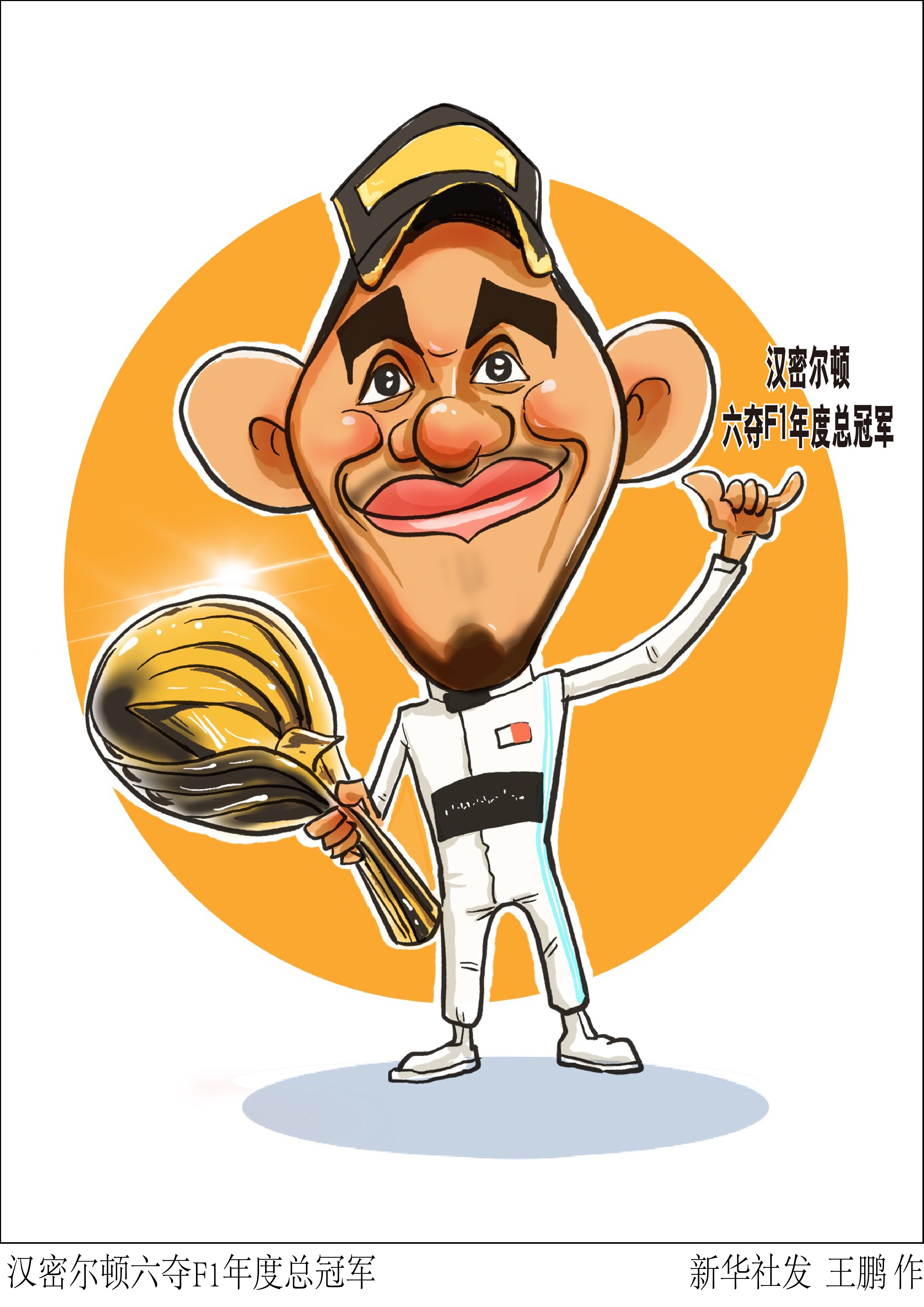 Mercedes driver Lewis Hamilton was crowned Formula 1 world champion for the sixth time this season with 413 points, after a dominant pole-to-flag victory at the Abu Dhabi Grand Prix on December 1. The 34-year-old Briton is now just one title shy of Michael Schumacher's record of seven. (Xinhua/Wang Peng)