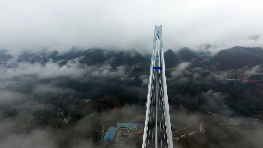 Aerial photo taken on Dec. 30, 2019 shows the Pingtang Bridge in southwest China's Guizhou Province.(Xinhua/Yang Wenbin)